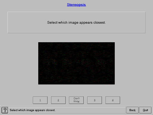 Stereopsis is not required to use a computer, however this test gives useful information to support the results from previous tests (Visual Acuity, Fixation Disparity and Occular Motor Balance).